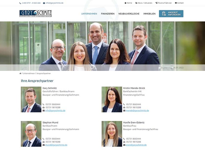 Die Webseiten der Gary Schmitz - Immobilien- und Finanzbetreuung aus Löhne haben wir 2018 einem Relaunch unterzogen. Dabei haben wir neben einem "Responsive Webdesign" auch auf ein "frisches" TYPO3 System (8.7.9) wert gelegt.
